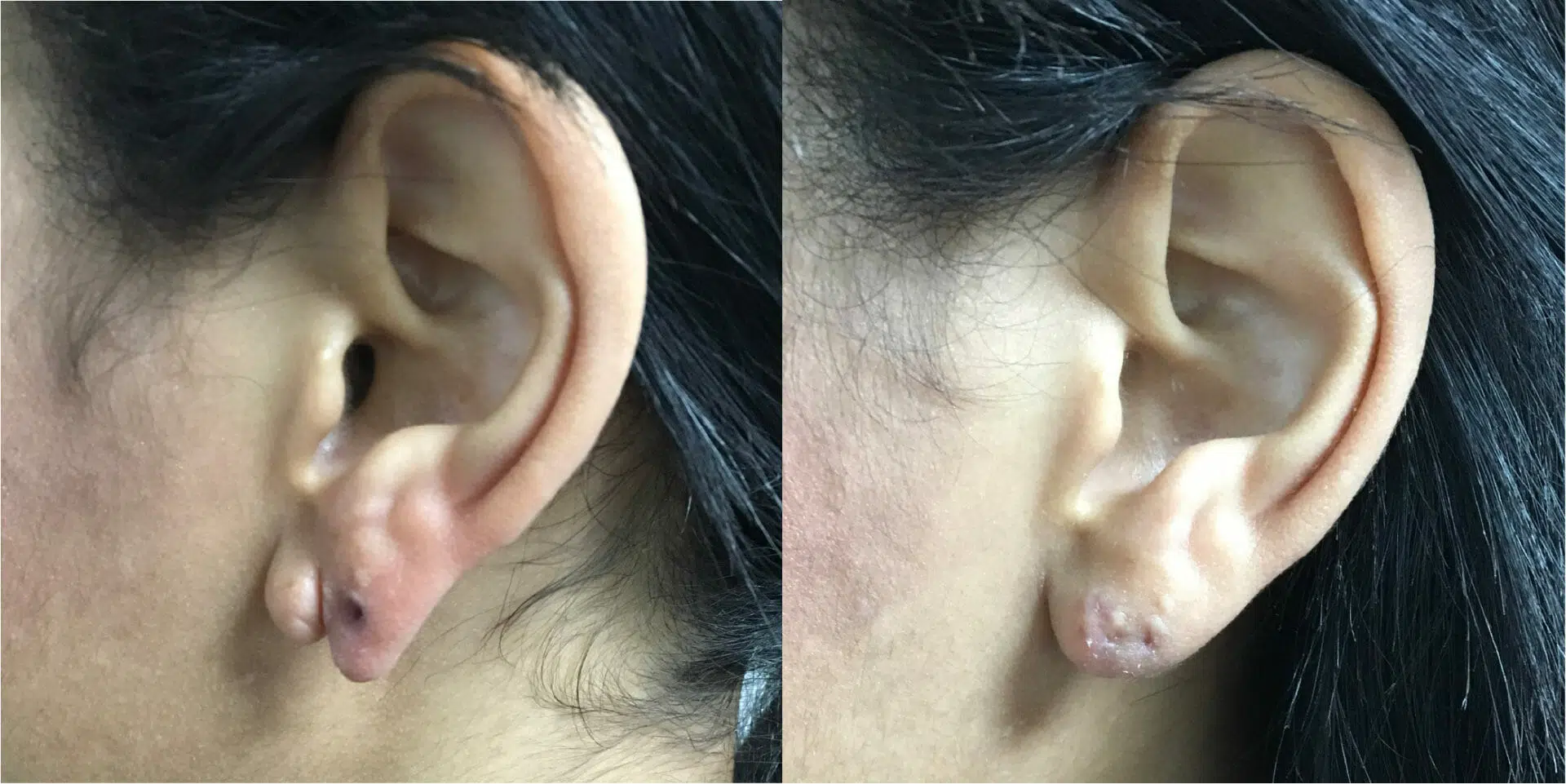 Relative cautions include a history of keloid or hypertrophic scarring, poorly controlled diabetes, active skin infection, or inability to avoid heavy earrings during healing. We’ll discuss individual risks and strategies to reduce them at consultation.