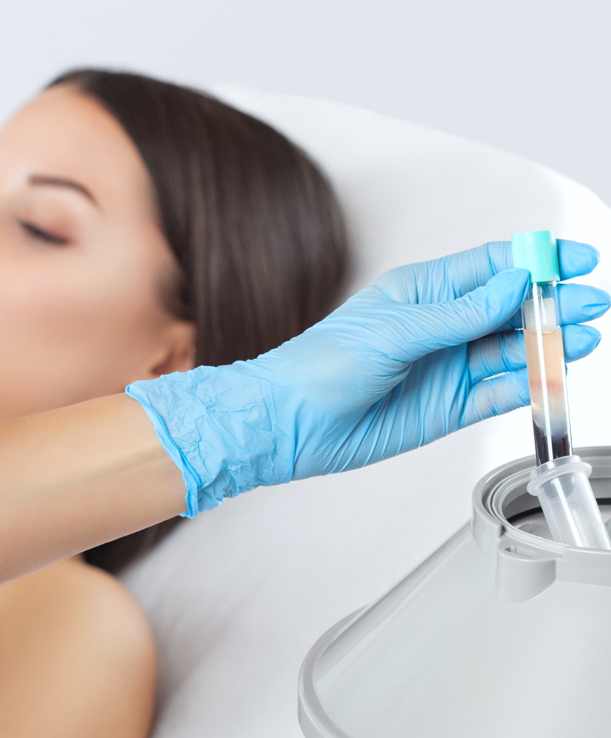 Platelet-Rich Plasma (PRP) therapy involves using a concentration of a person’s own platelets to accelerate the healing of injured tendons, ligaments, muscles, and joints. The use of PRP for aesthetics has become widely popular with the Vampire PRP facial. In the context of hair loss, PRP is used to stimulate dormant hair follicles to promote new hair growth and thicken existing hair.