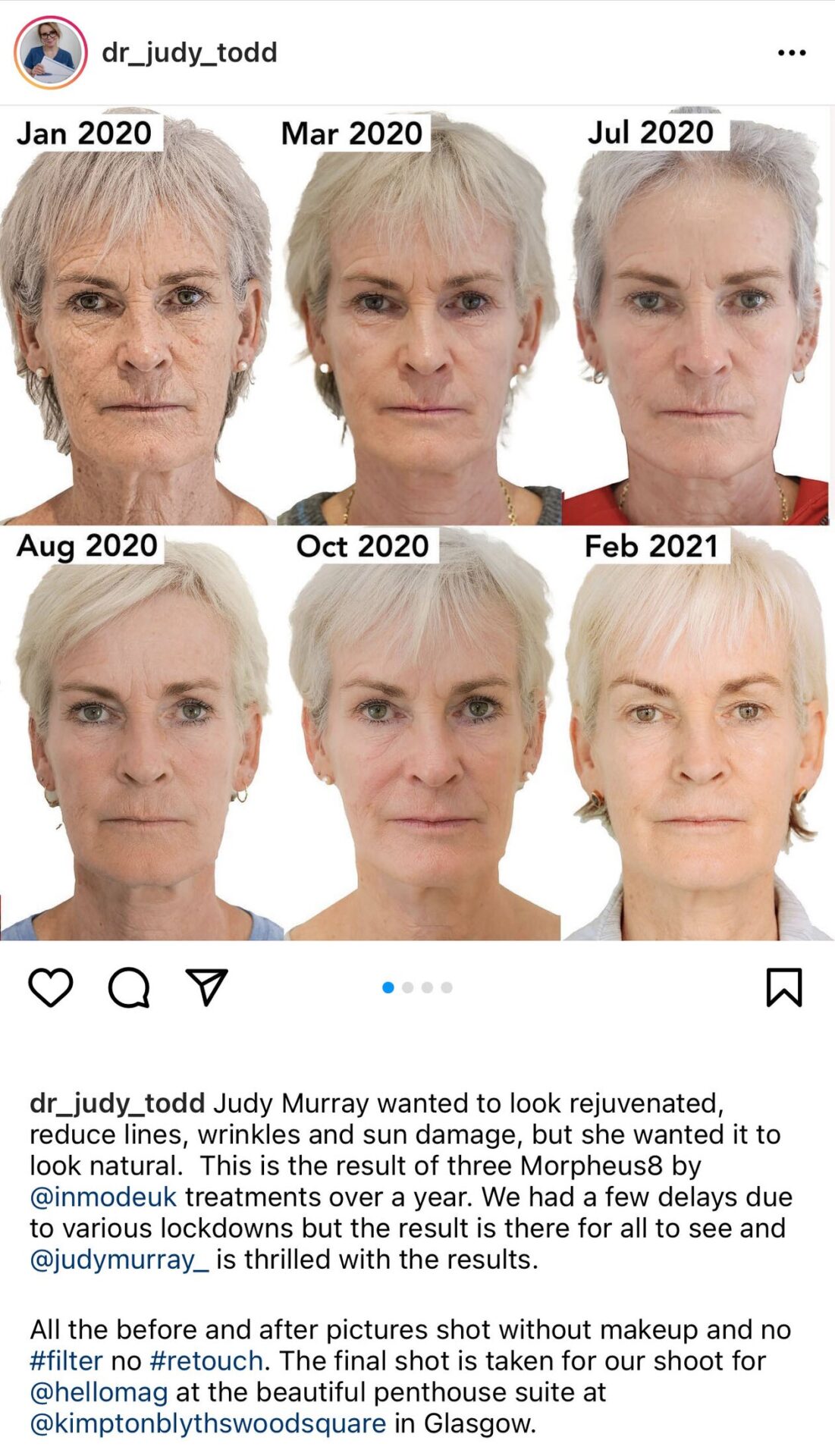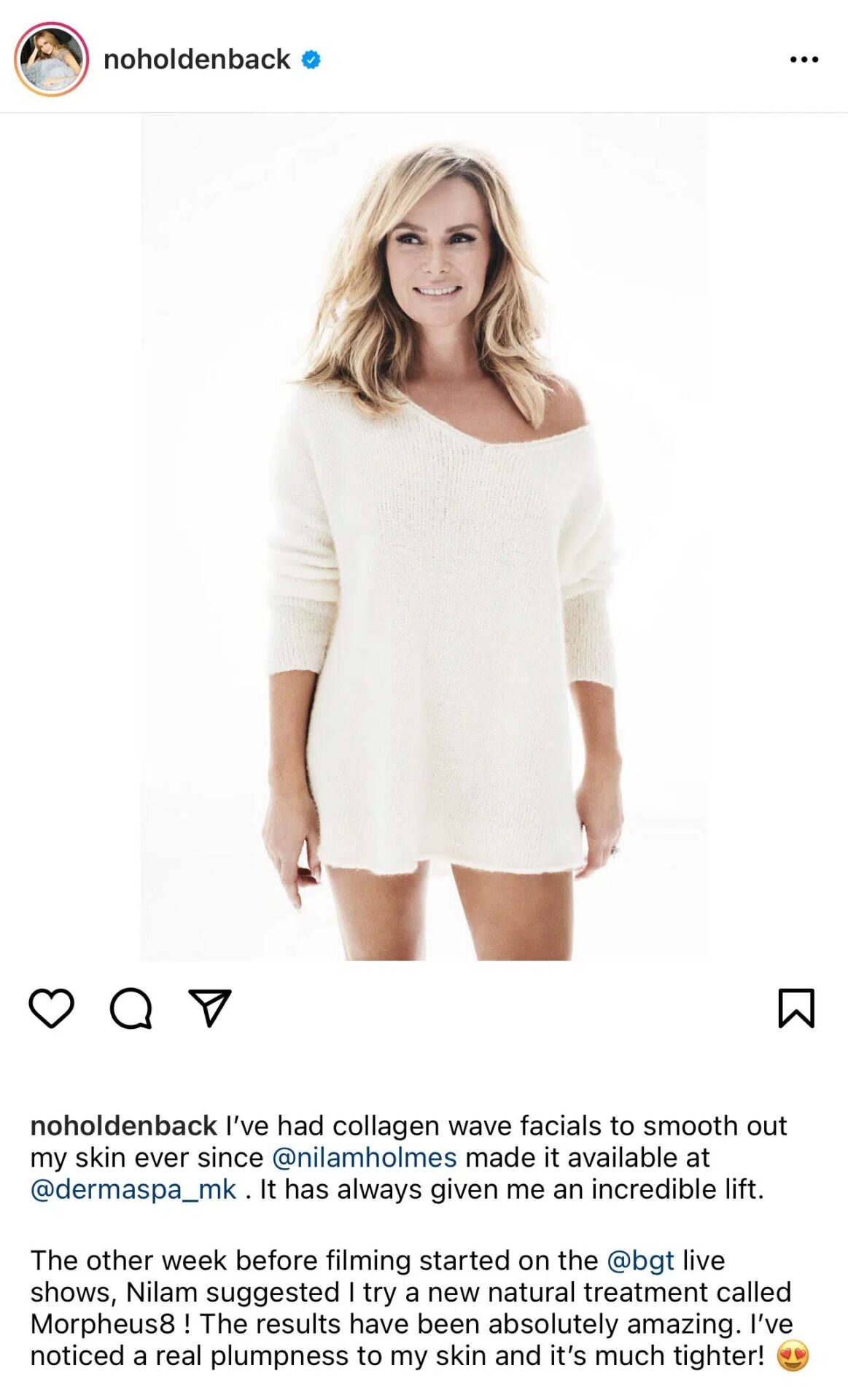 But Judy is not the only celebrity to favour the non-invasive radiofrequency skin tightening treatment. Britain’s Got Talent star, Amanda Holden has also had Morpheus8. Amanda has said that “The results have been absolutely amazing. I’ve noticed a real plumpness to my skin and it’s much tigher!”